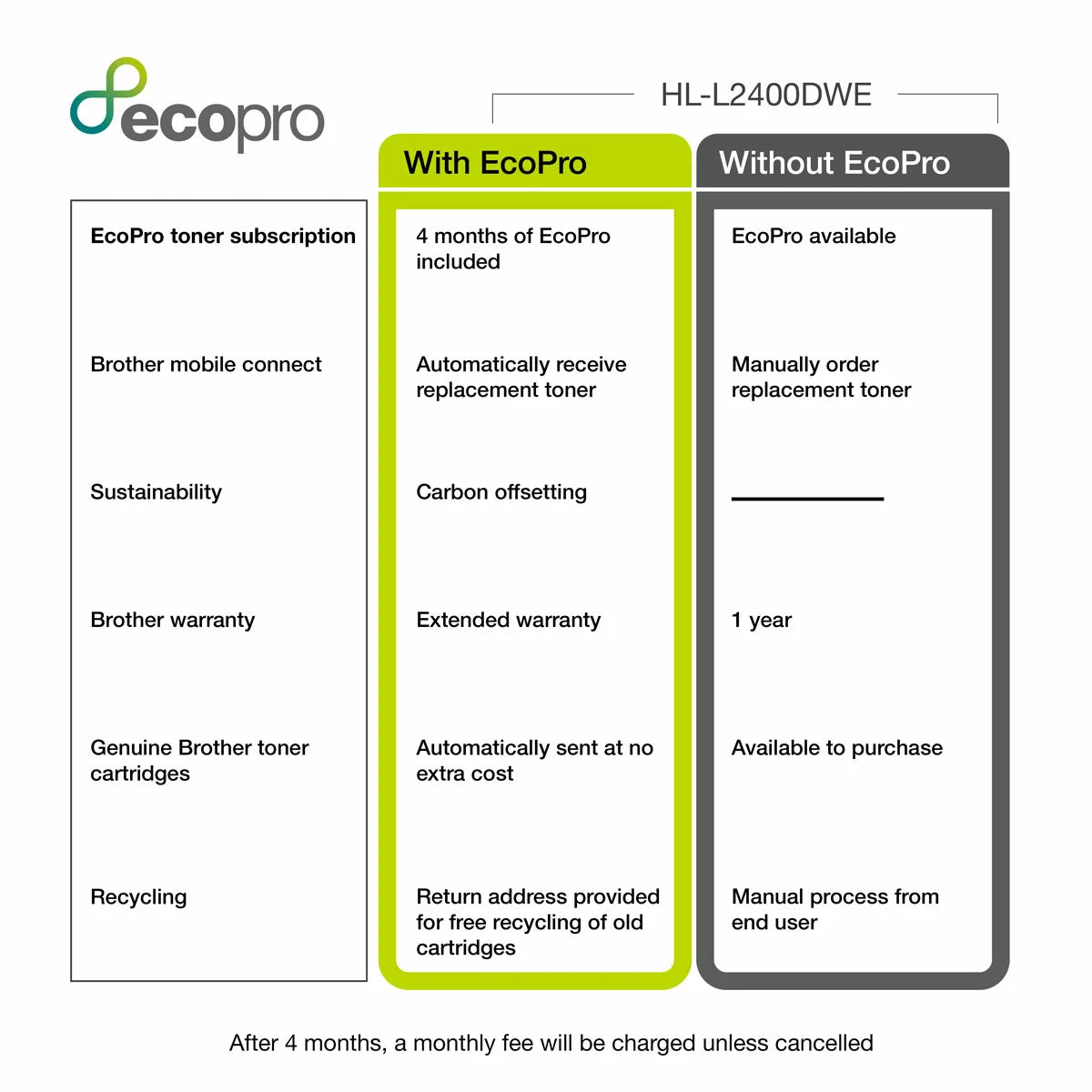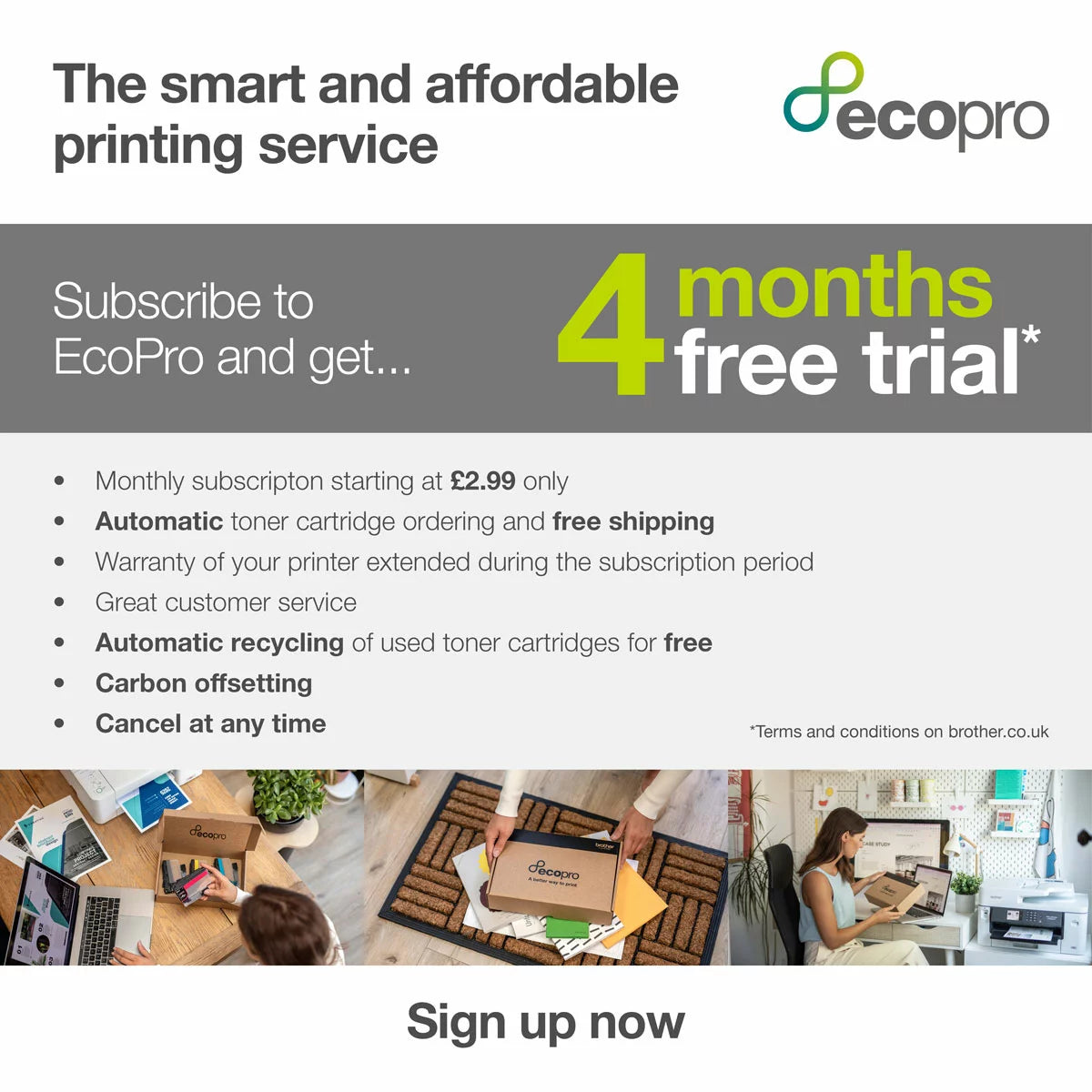 Take control from anywhere using the Brother Mobile Connect App, allowing you to print, scan, and order supplies straight from your phone. With EcoPro subscription, toner is delivered automatically with free recycling and warranty support — making it easier to print smarter.