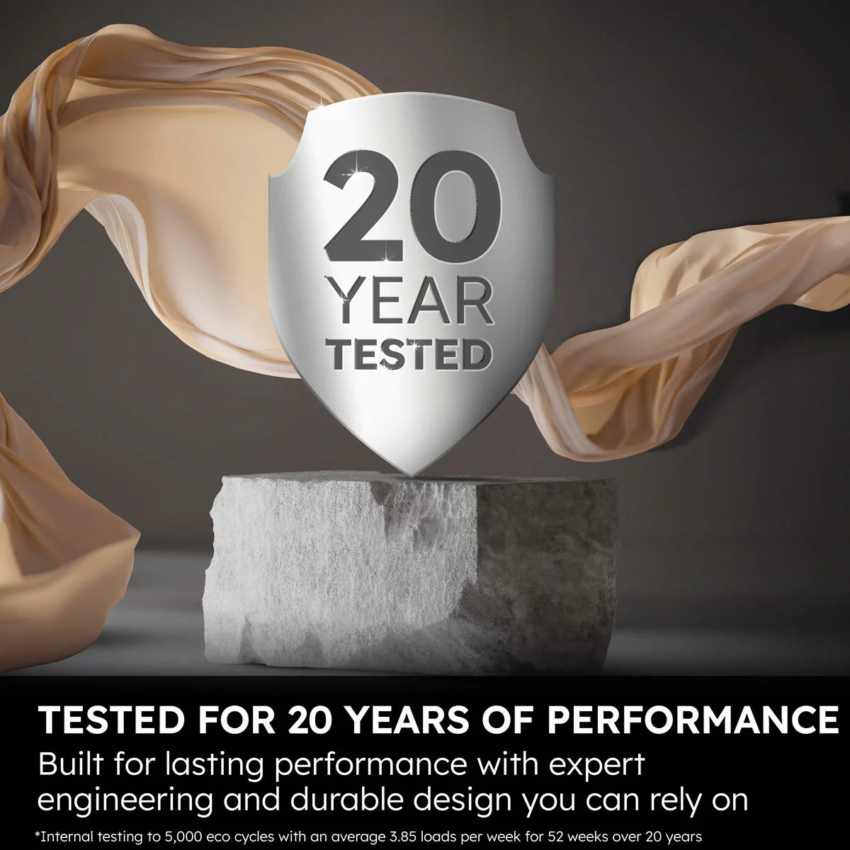 Experience 20 years of reliable performance with this intelligently engineered washing machine, rigorously tested for durability and powered by AI-optimised technology. With its ultra-quiet AI Power Drive Inverter Motor and laser-welded drum, it delivers outstanding stability, strength, and performance—load after load.