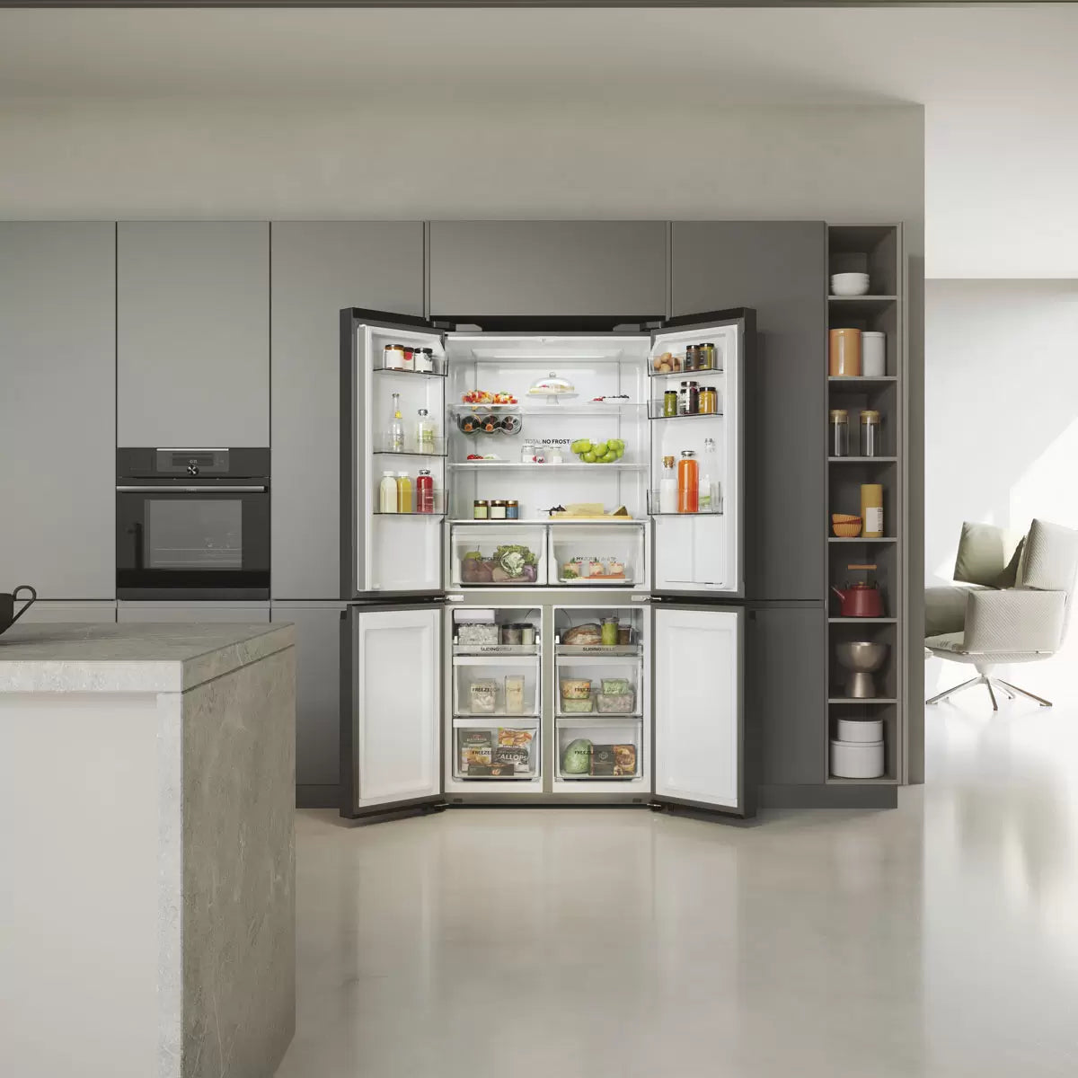 The HCR5919EHMB is fitted with the best of Haier's revolutionary Fresher Techs® and innovations that ensure your groceries are kept fresher for longer. Haier's Cube 90 Series 5 refrigerator guarantees the perfect preservation of your food thanks to specialised zones equipped with advanced technologies, and other dedicated zones to preserve your food longer.