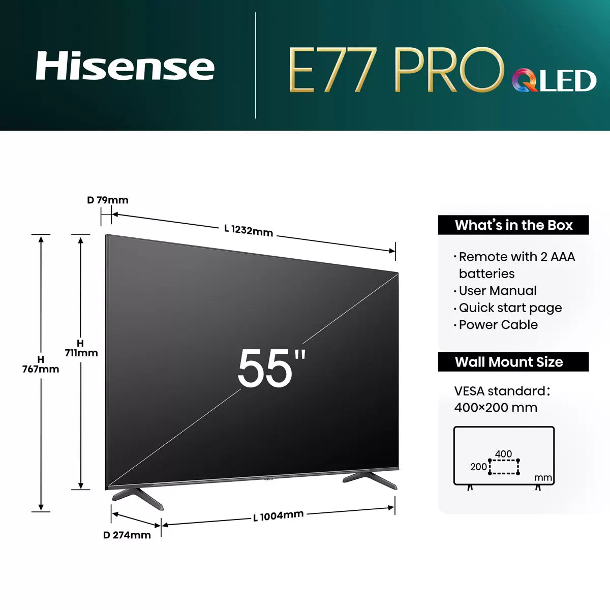 Hisense 55E77NQTUK – Stunning visuals, immersive sound, and precision gaming in one powerhouse TV.