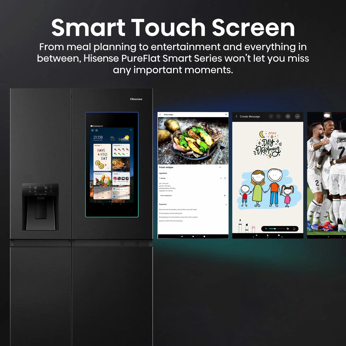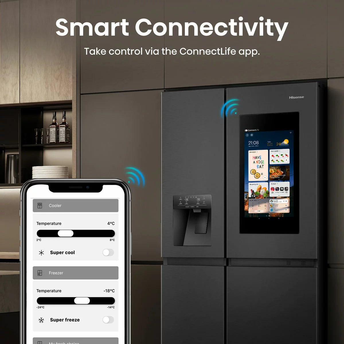 The Hisense RS9P628GPFE Infinite Eclipse isn’t just a fridge freezer – it’s the ultimate smart hub for your kitchen. With a built-in smart touchscreen, you can plan meals, follow recipes, leave family messages, display photos, and even screen share – all controlled directly or via the ConnectLife App. Compatible with Alexa and Google Assistant, it gives you hands-free convenience and next-level control.