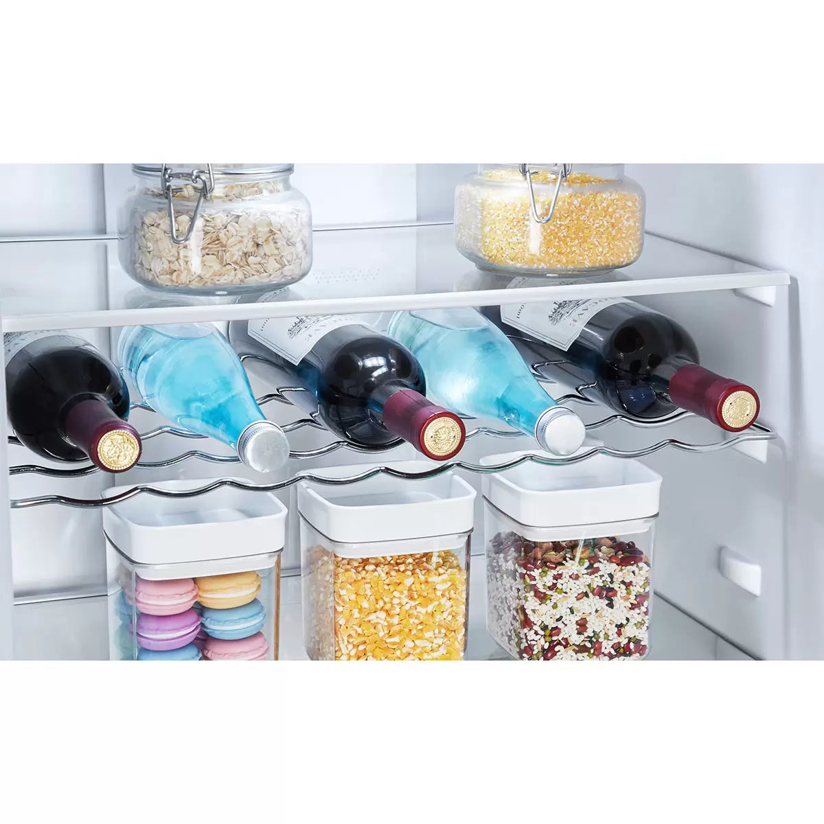 Stylish space for storing bottles. A dedicated and stylish space for wine and soft drink bottles frees up space in your fridge door and prevents bottles from rolling around on the shelves.