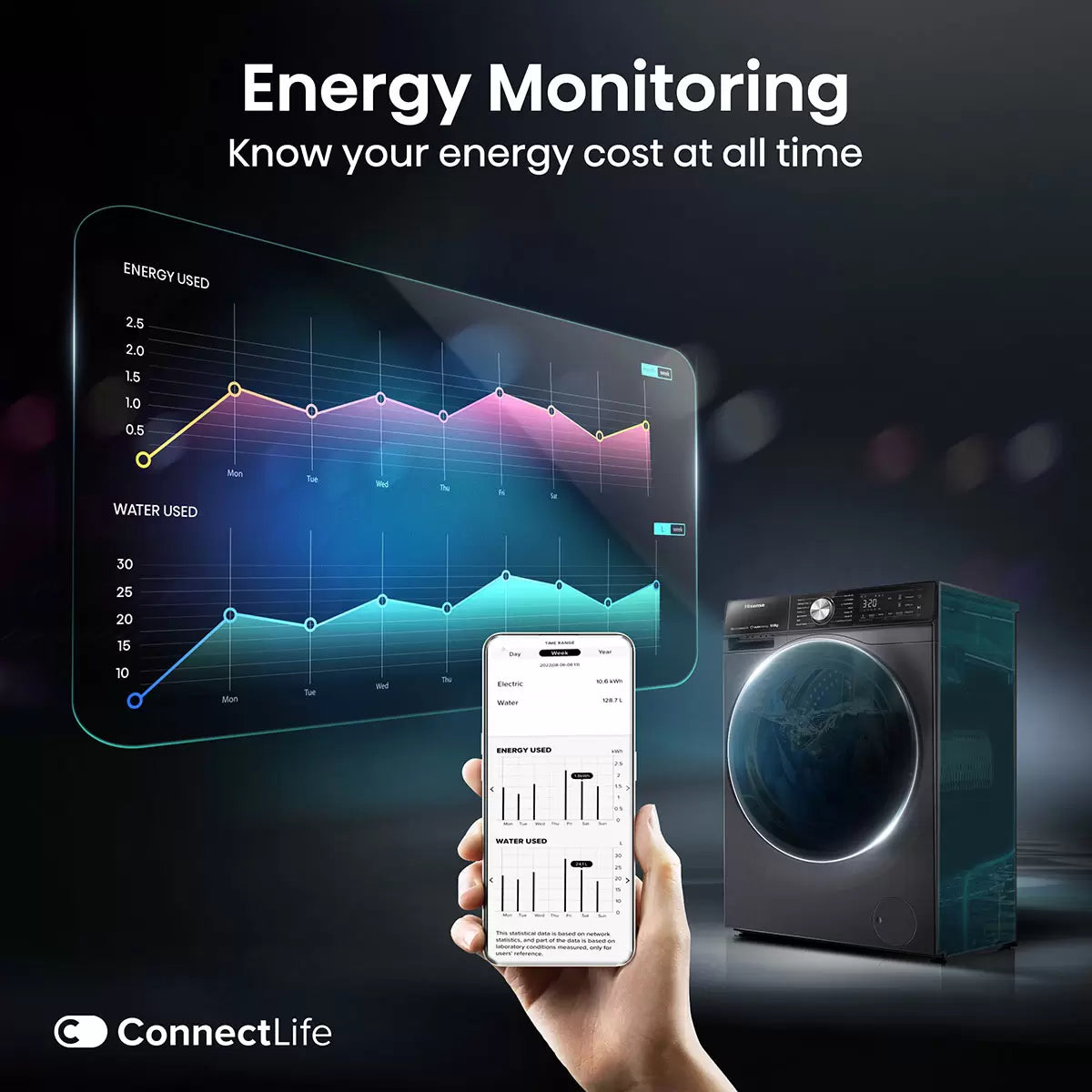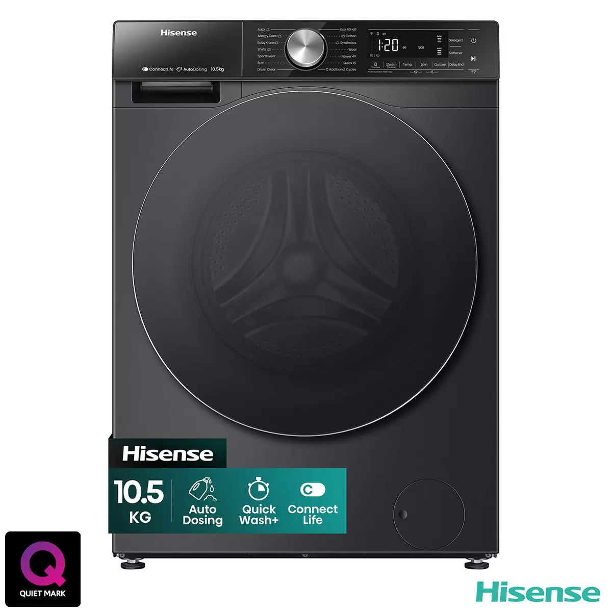 Hisense WF5S1045BB, 10.5kg 1400rpm Washing Machine, A Rated in Black