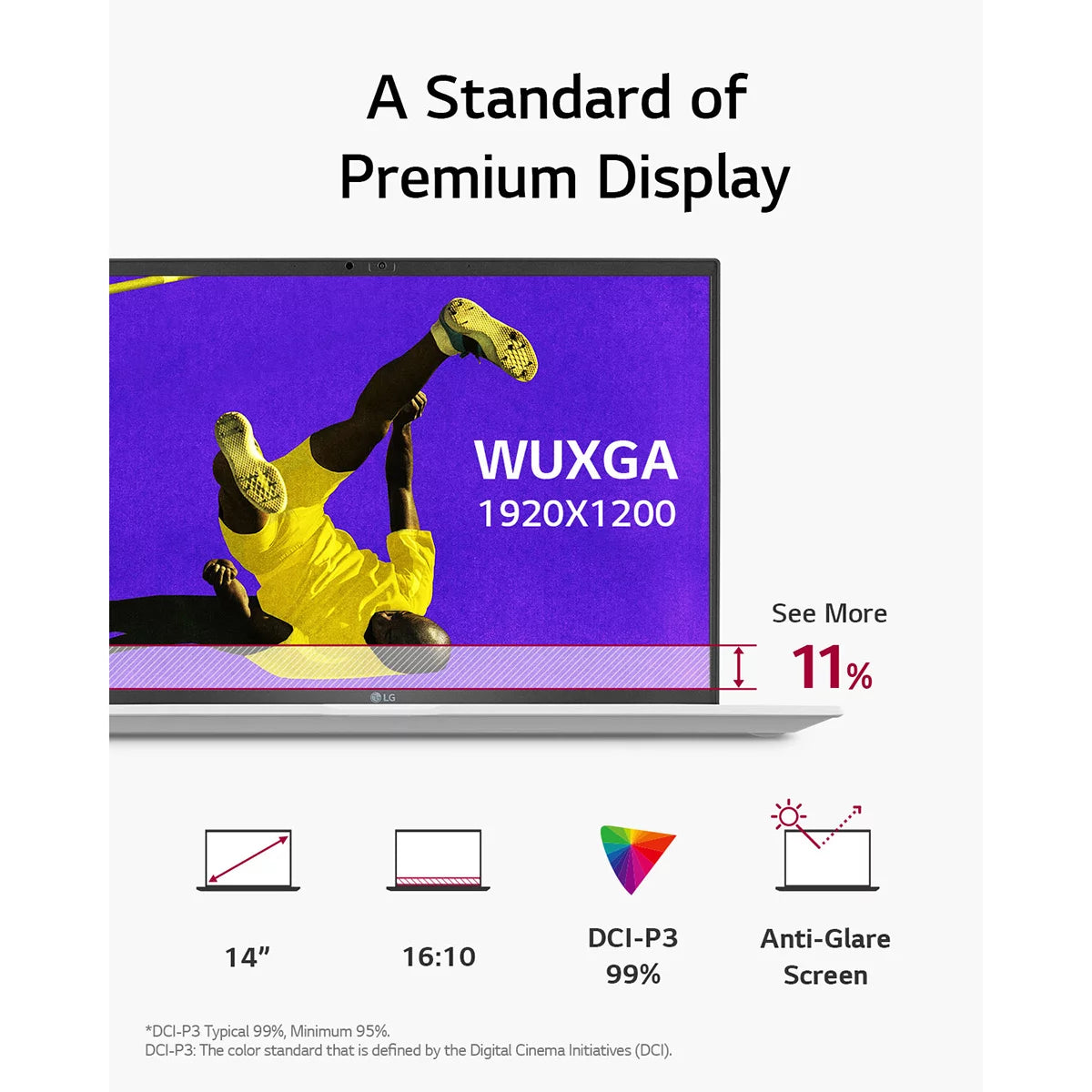 Brilliant visuals ā WQXGA 16:10 display with 99% DCI-P3