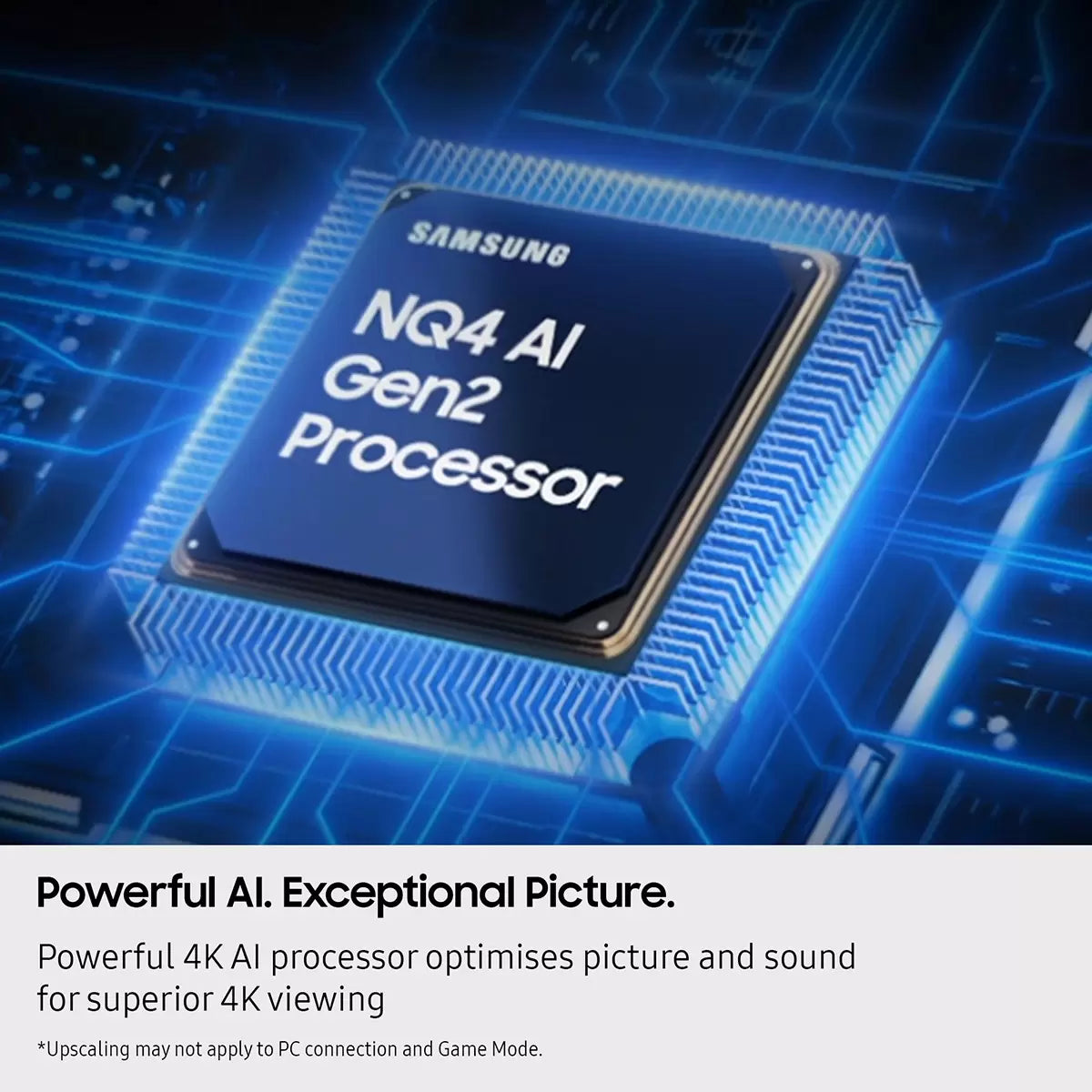Our powerful 4K AI processor upgrades everything you watch, with intelligent enhancements to your 4K entertainment. Powered by 20 neural networks, enjoy optimised brightness, depth, contrast, motion, sound and resolution - for an exceptional 4K experience.