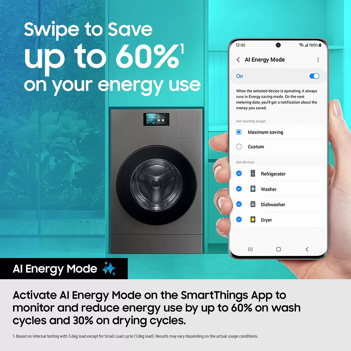 Samsung Series 9 WD18DB8995BZT1 18/11kg Large Capacity Washer Dryer, Dark Steel