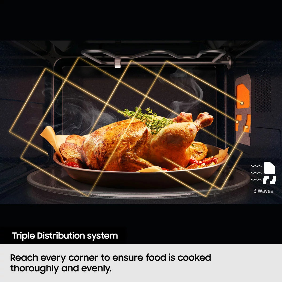 Enjoy minimum effort and maximum taste with the Samsung 23L Microwave, designed for quick, even, and delicious results every time. Perfect for everyday meals, this stylish microwave features Triple Distribution Technology for thorough cooking, Auto Cook presets for convenience, and a Ceramic Enamel Interior that’s easy to clean and built to last.