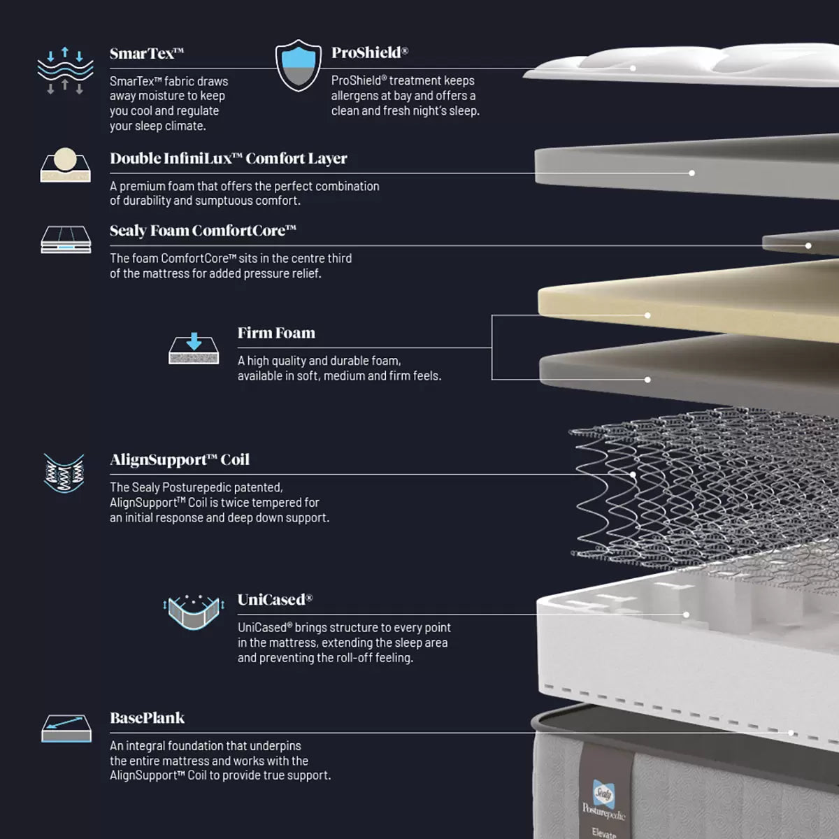 Sealy Posturepedic Elevate Forte Medium Mattress in 4 Sizes