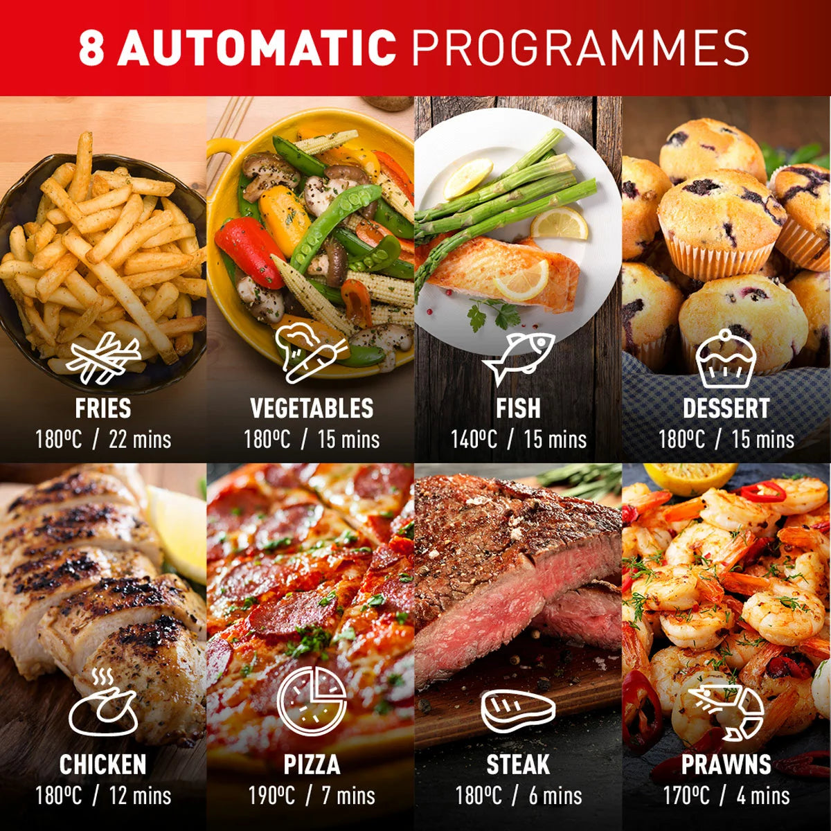 Whether you’re roasting a full 2kg chicken, baking a 24cm pizza or whipping up a tray of 9 muffins, this powerful air fryer makes healthy, tasty cooking effortless and fast.