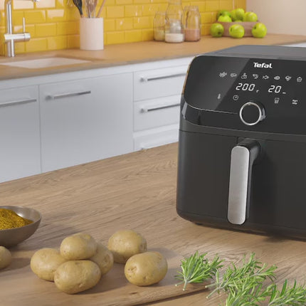 Discover an air fryer big enough to feed the whole family without taking over your kitchen. The Tefal Easy Fry Mega (7.5L) offers extra-large capacity for up to 8 people, yet features a sleek, compact design that fits neatly on your countertop.