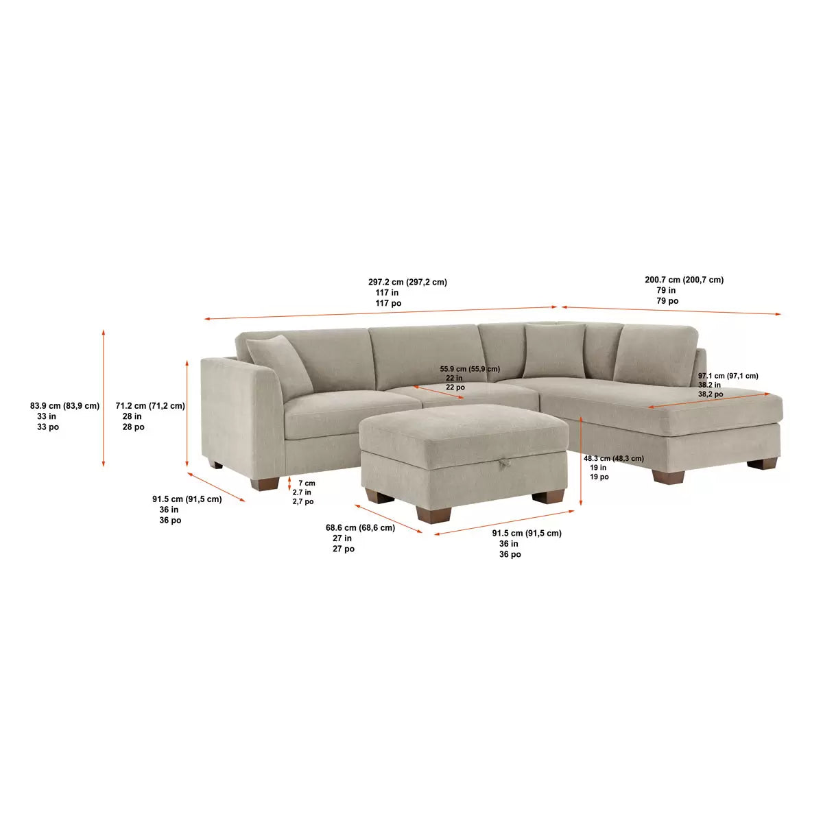 Thomasville Walsen Grey Fabric Corner Sofa with Storage Ottoman in 2 Configurations